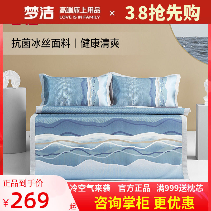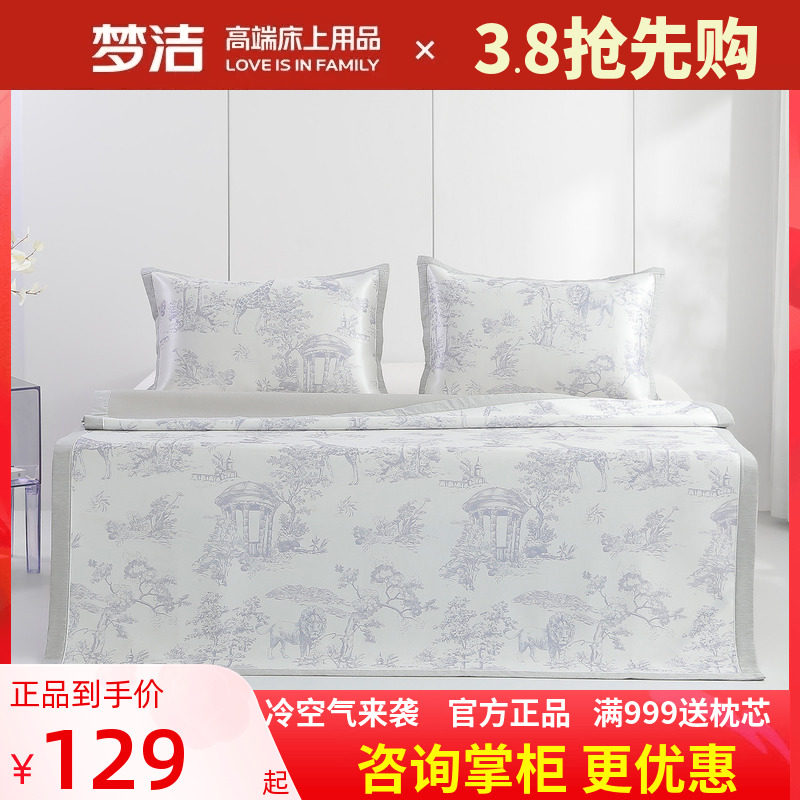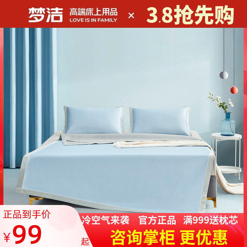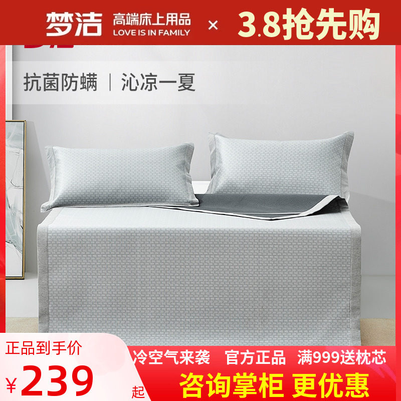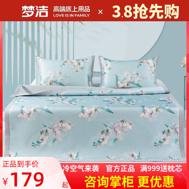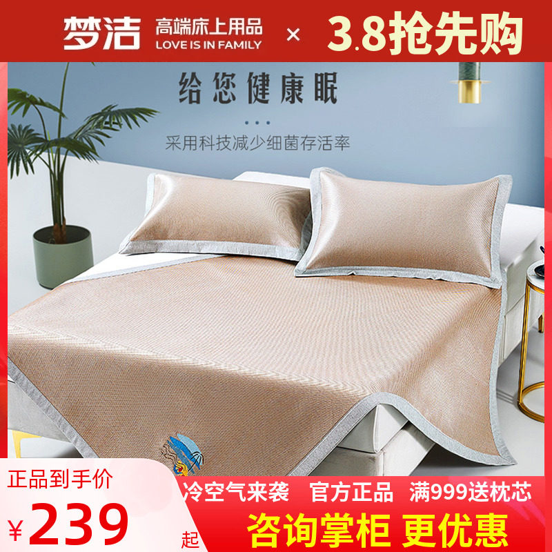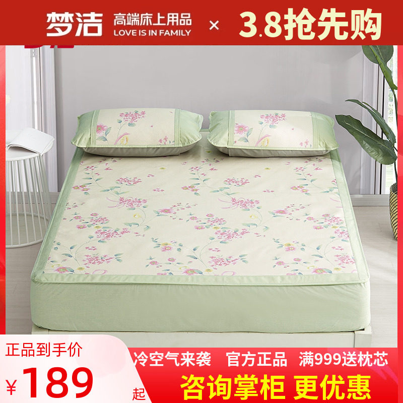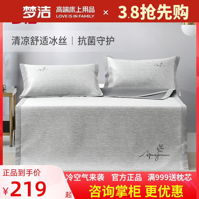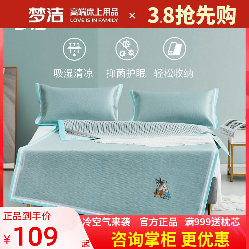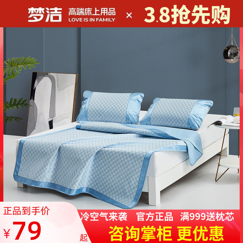 梦洁家纺官方旗舰店正品官网家纺冰丝席凉席可折叠1.8m床三件套