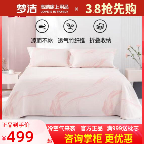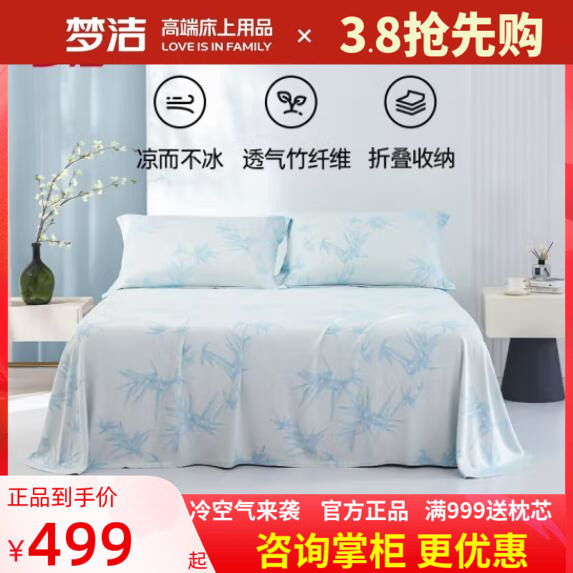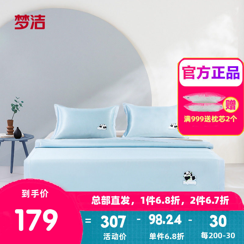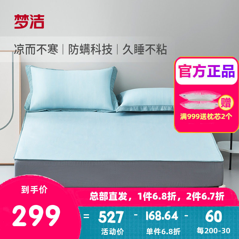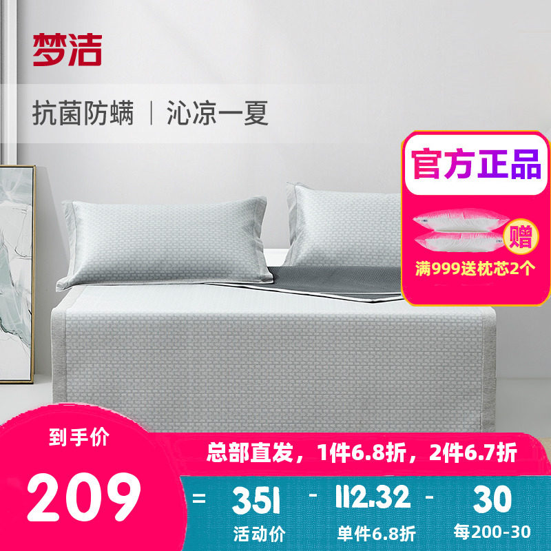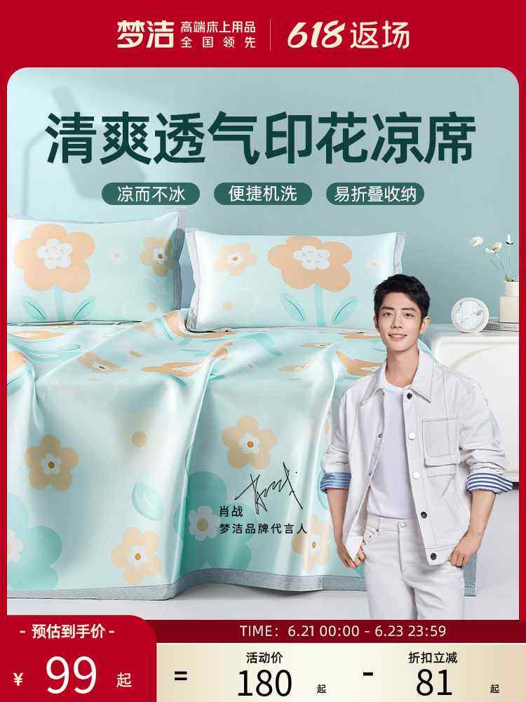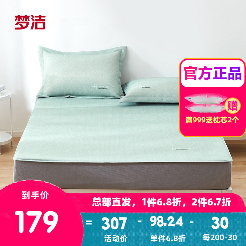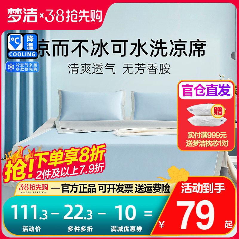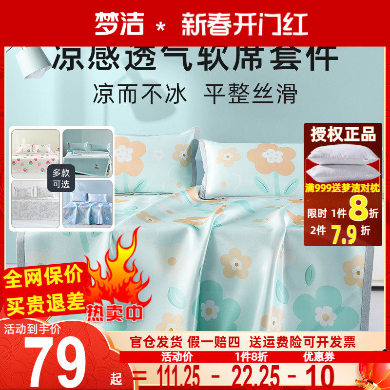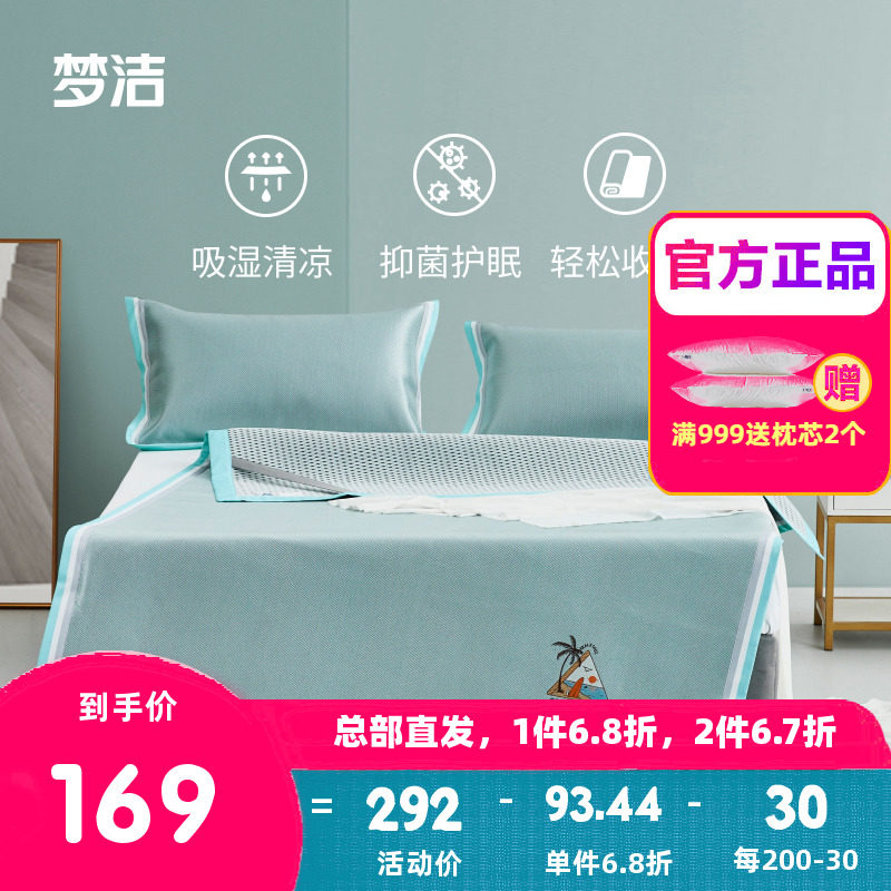 梦洁家纺官方旗舰店正品官网家纺冰丝席凉席可折叠1.8m床三件套