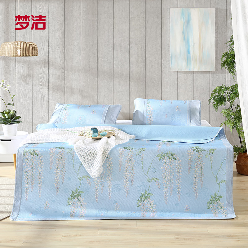梦洁家纺冰丝席印花竹草藤席软席子可折叠宿舍学生家用凉席套件