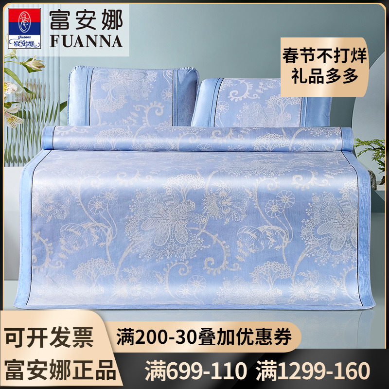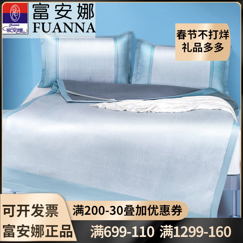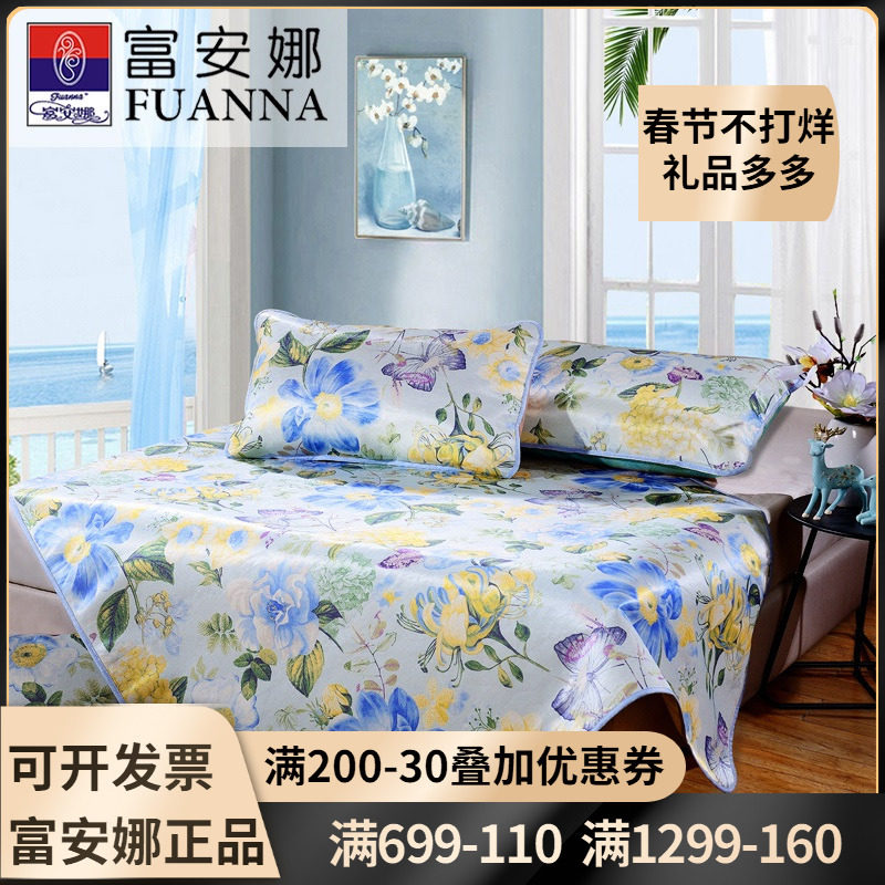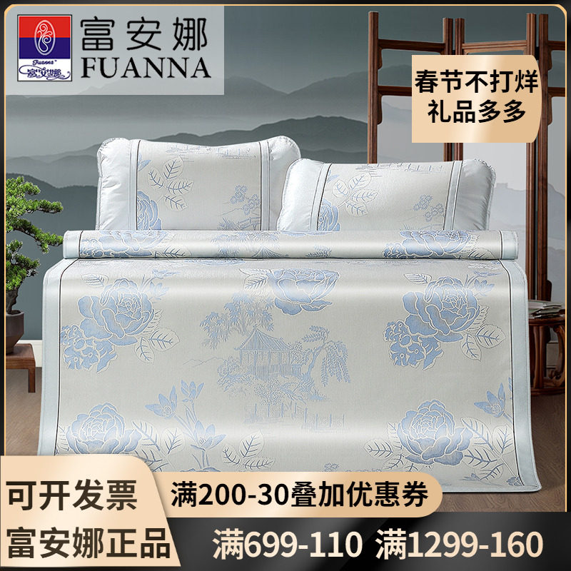 富安娜家纺夏凉席可折叠席子三件套1.5米1.8米凉席 江南春冰丝席