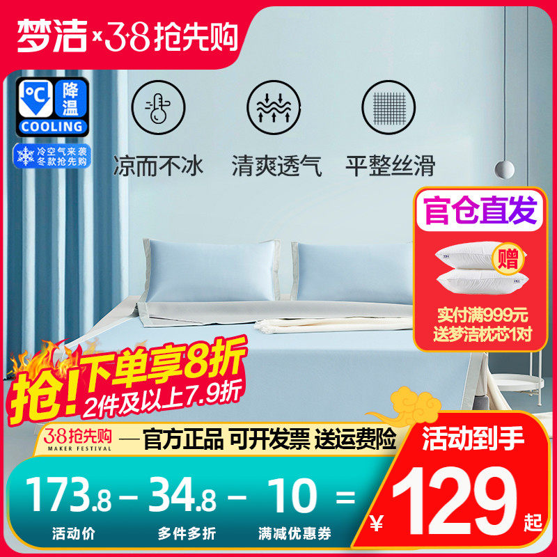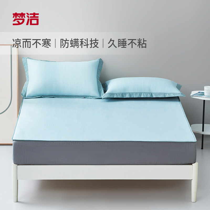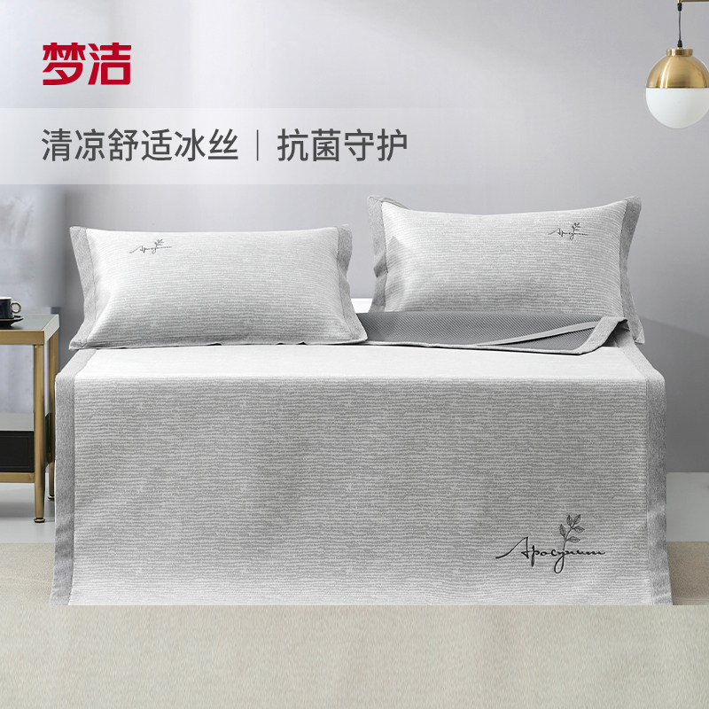 梦洁家纺抗菌冰丝凉席套件三件套床品1.8m床软席空调床单席子维纳