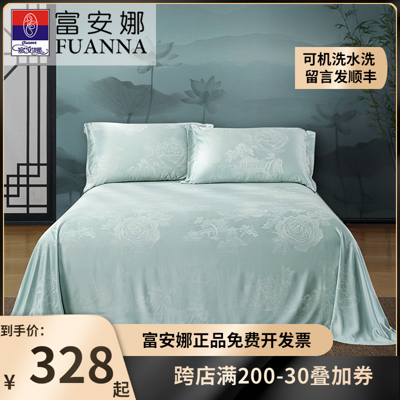 富安娜可水洗冰氧吧竹纤维凉席负离子床单夏季空调软席子浅夏时光