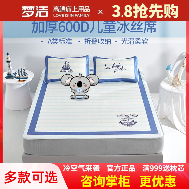 梦洁宝贝A类儿童可水洗凉席夏天学生宿舍单人席子床笠款两三件套