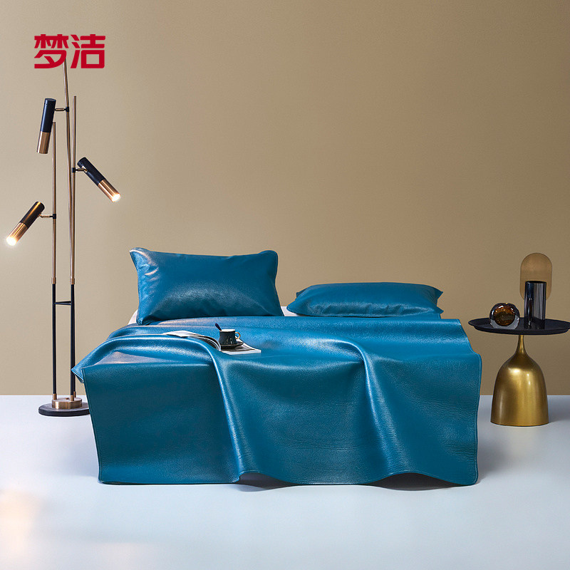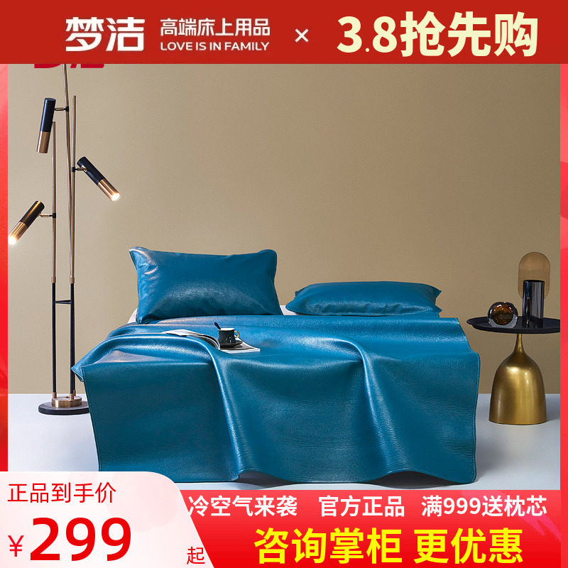 梦洁家纺官方旗舰店正品官网头层牛皮席简约纯色凉席夏季三件套席