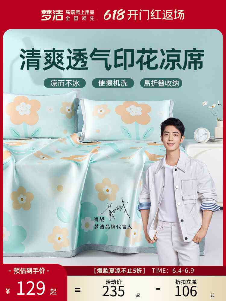 梦洁冰丝可折叠印花夏凉席空调软席儿童宿舍席子梦洁家纺三件套