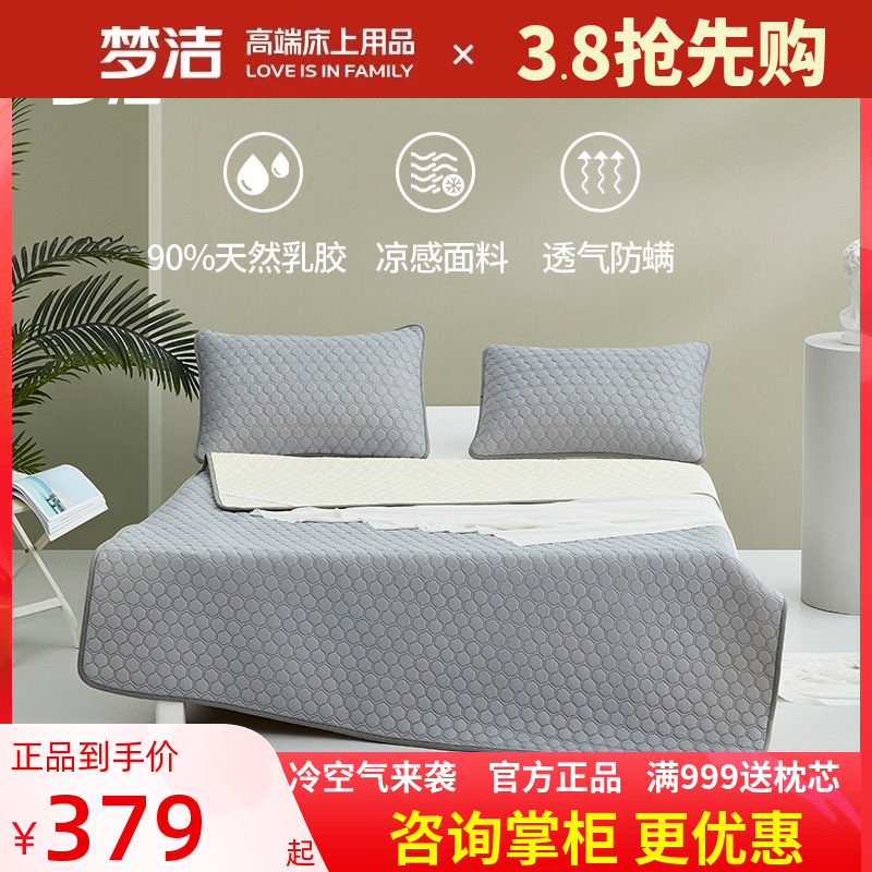 梦洁乳胶床垫泰国天然橡胶凉感乳胶凉席三件套可水洗软垫席子夏天