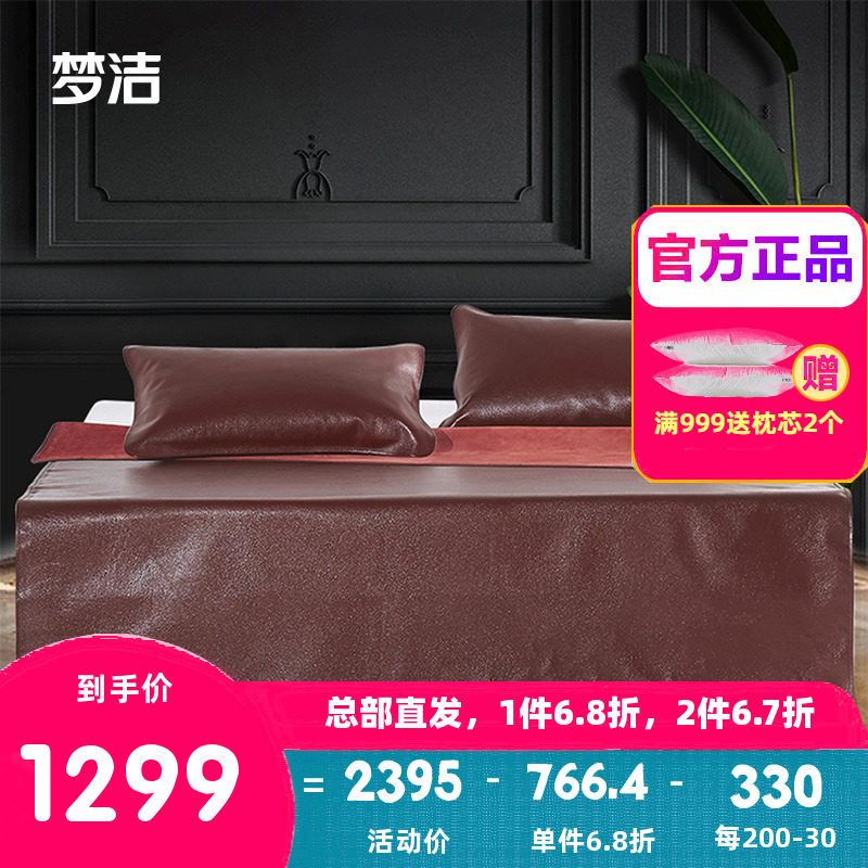 梦洁家纺官方旗舰店正品官网家纺牛皮席头层牛皮凉席软席1.5米加