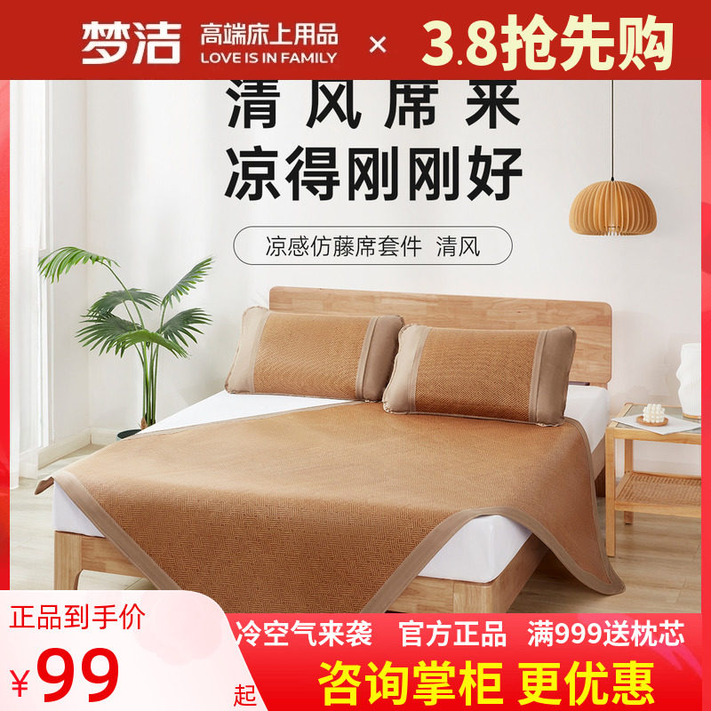 梦洁冰丝藤席三件套1.8m夏天空调软席1.5软席抗菌可折叠黄金海岸