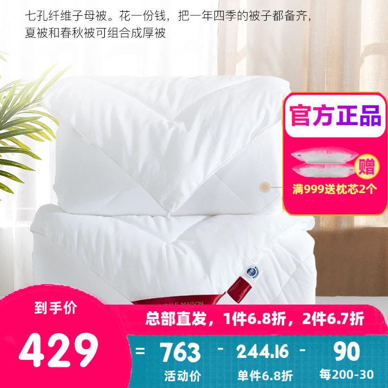 梦洁家纺官方旗舰店正品官网抗菌防螨暖芯七孔二合一被/棉被 子母