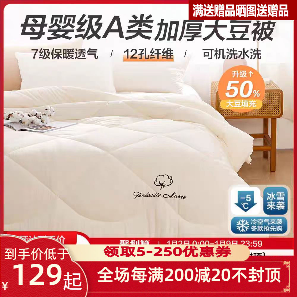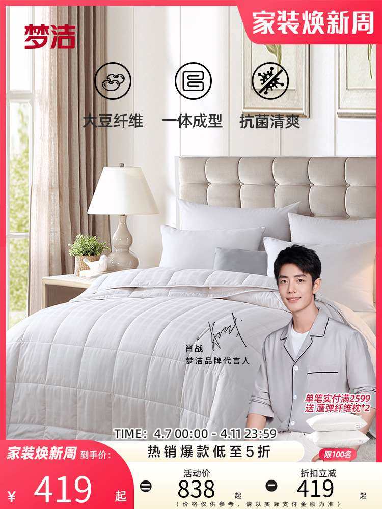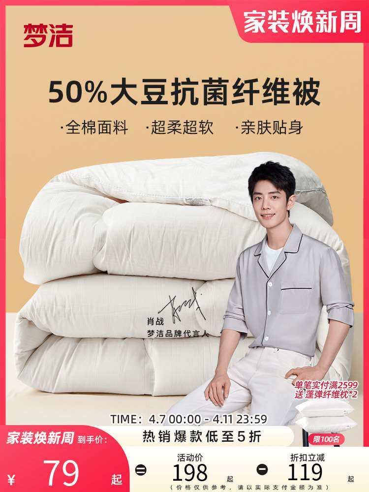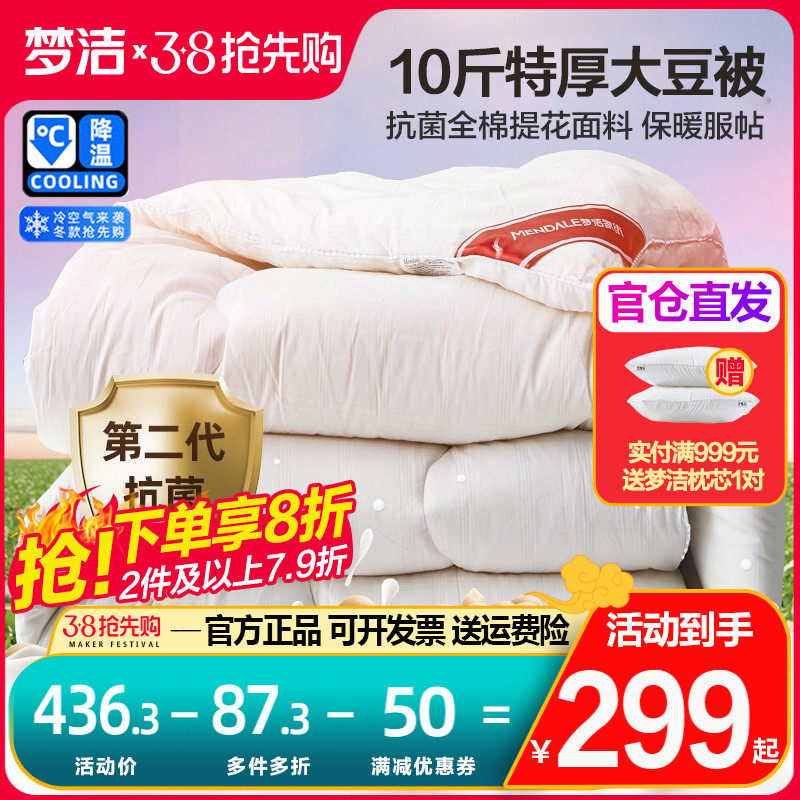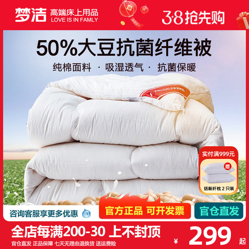 梦洁家纺春秋被被子被芯全棉大豆纤维被空调被厚被抗菌纯棉夏棉被