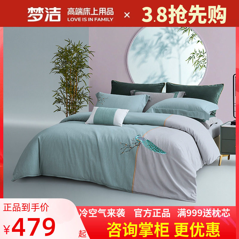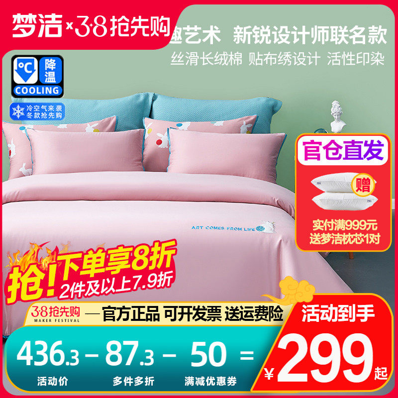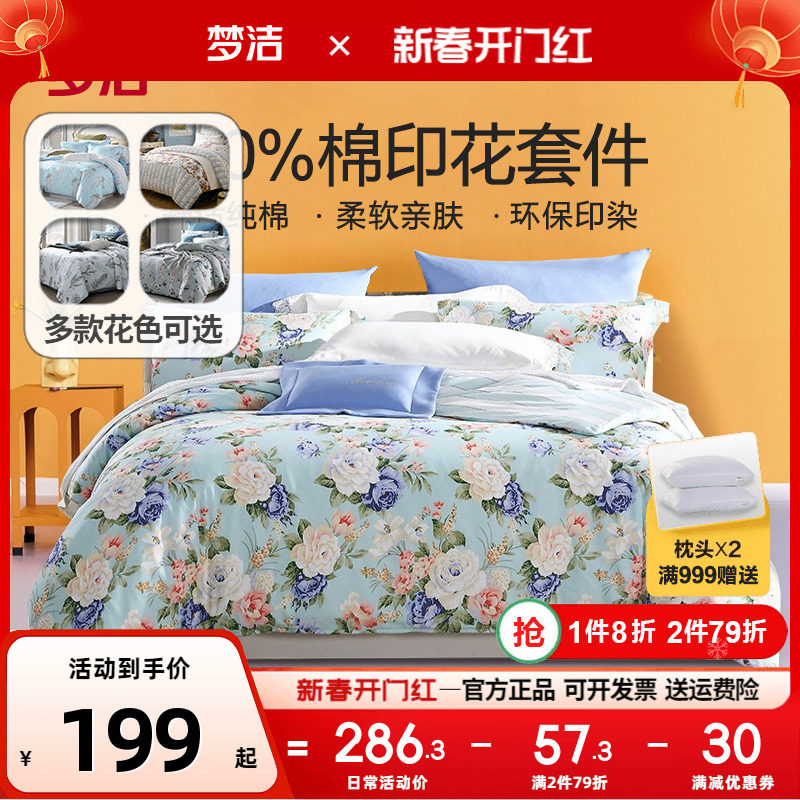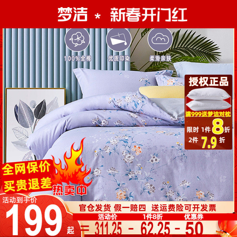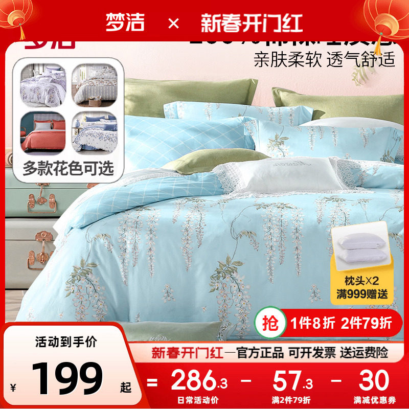 梦洁家纺正品全棉四件套100纯棉被套床单田园风简约风梦洁248x248
