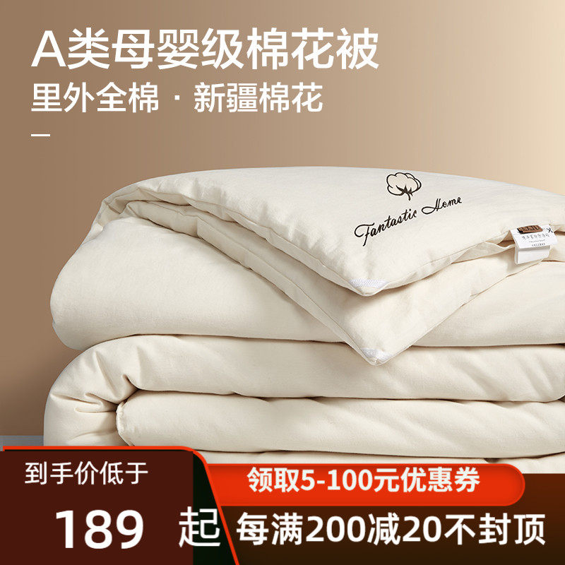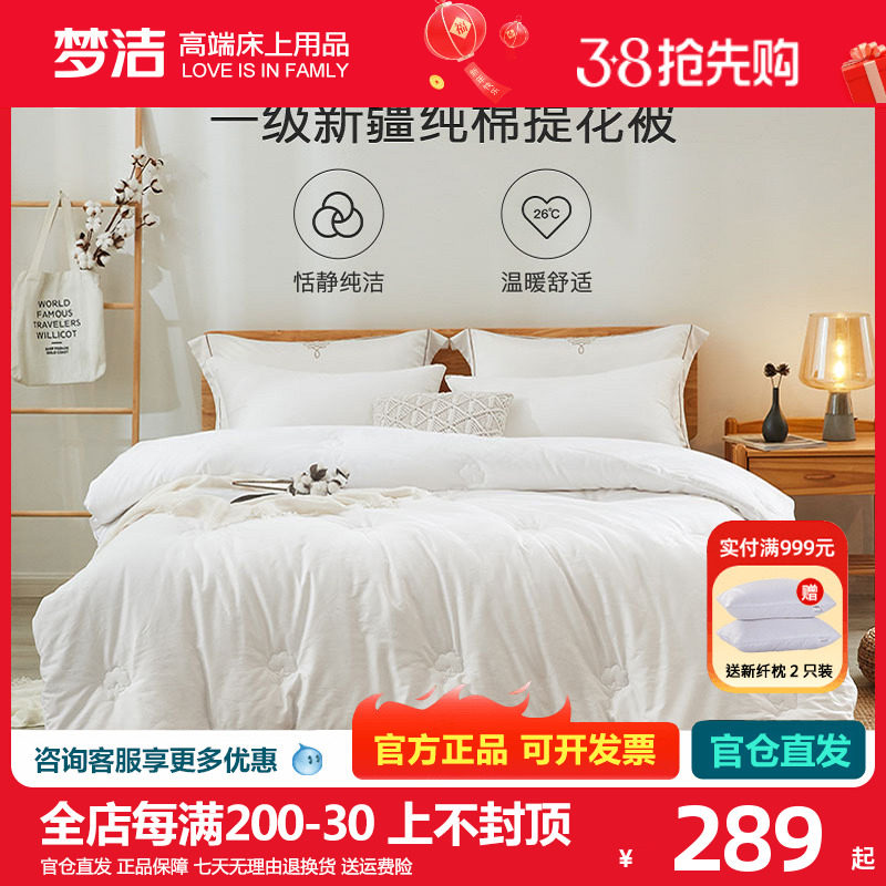 梦洁家纺一级新疆新棉花被芯全棉春秋被纯棉被子加厚冬被2.48X248
