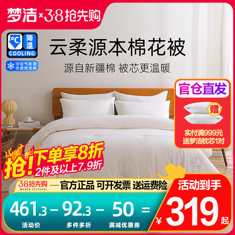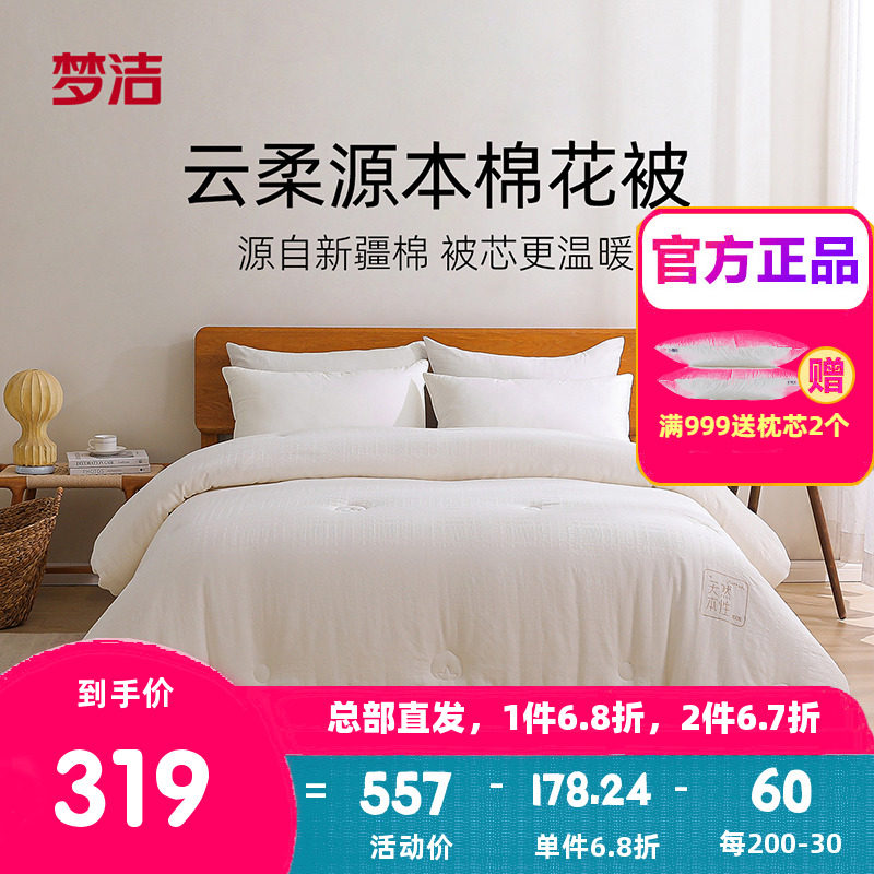 梦洁家纺被子棉花被纯棉全棉被芯四季加厚保暖冬被盖被云柔源本