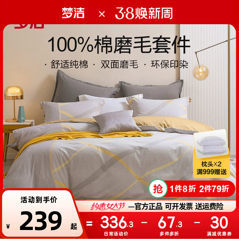 梦洁家纺纯棉四件套全棉被套床单1.8m春秋1.5m1.2床上用品248x248