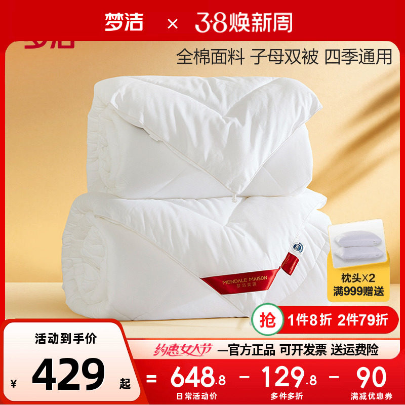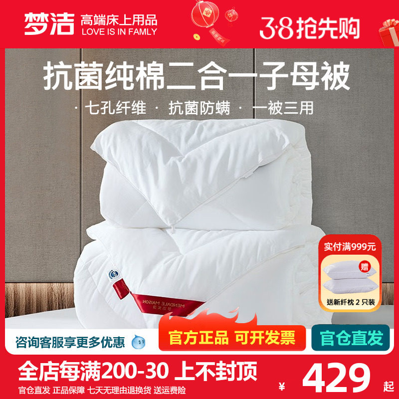 梦洁二合一子母被纯棉全棉棉被加厚被冬被春秋被冬季纤维被子被芯