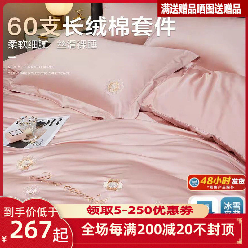 博洋60支长绒棉四件套全棉纯棉被套床笠款轻奢床上用品冬季三件套