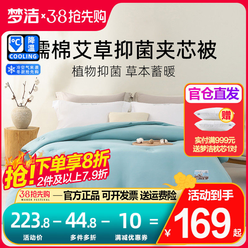 梦洁家纺磨毛被子芯糯棉艾草抗菌夹芯被春秋冬四季被保暖加厚棉被