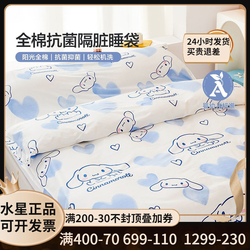 水星家纺A类全棉抗菌隔脏睡袋母婴级出差旅行便携式床单被套床品