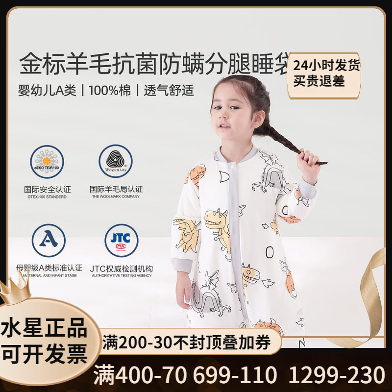水星家纺婴儿羊毛厚款分腿睡袋A类抗菌中厚宝宝防踢被23年新品
