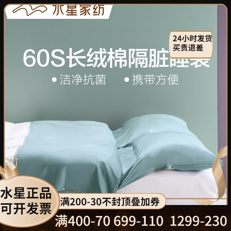 水星家纺60支长绒棉睡意盎然隔脏睡袋纯棉出差旅行床单便携被罩