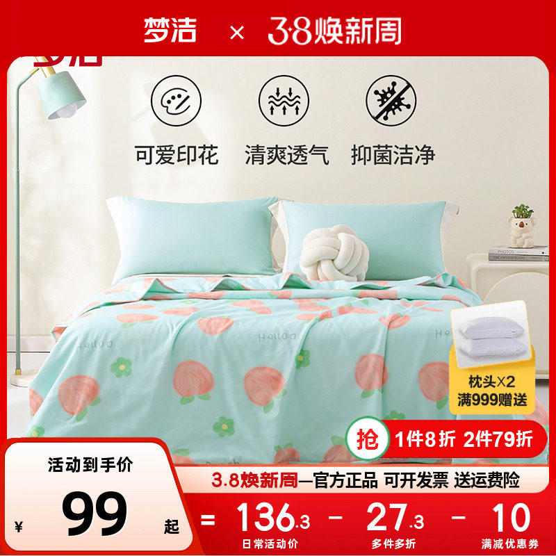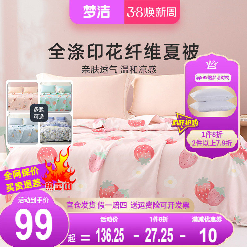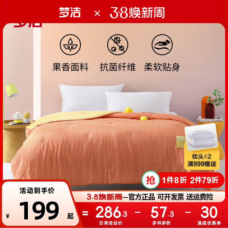 梦洁家纺夏凉被空调被可水洗单人双人薄被子换梦果茶纤维抗菌夏被