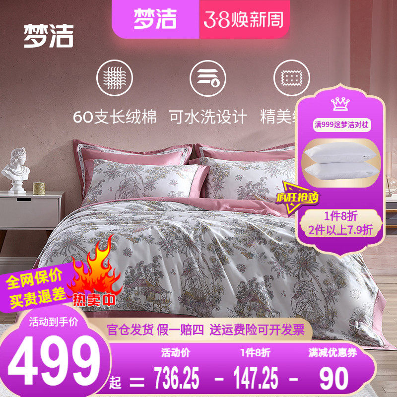 梦洁桑蚕丝可水洗夏被60支长绒棉法式空调被夏凉被花间影梦洁家纺