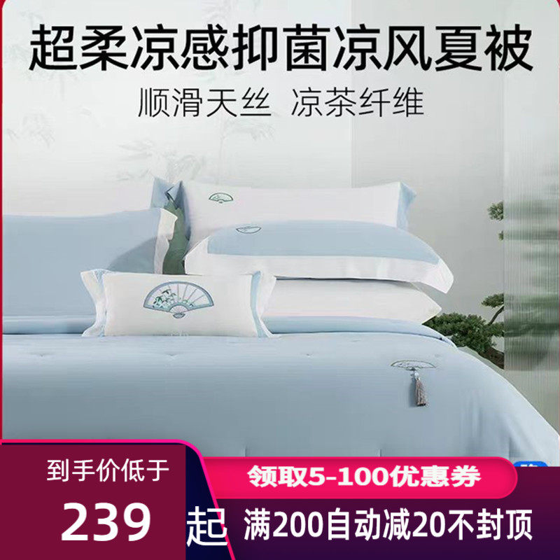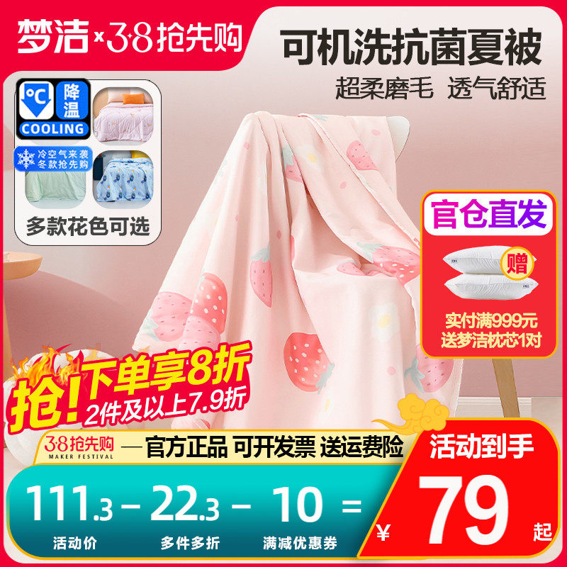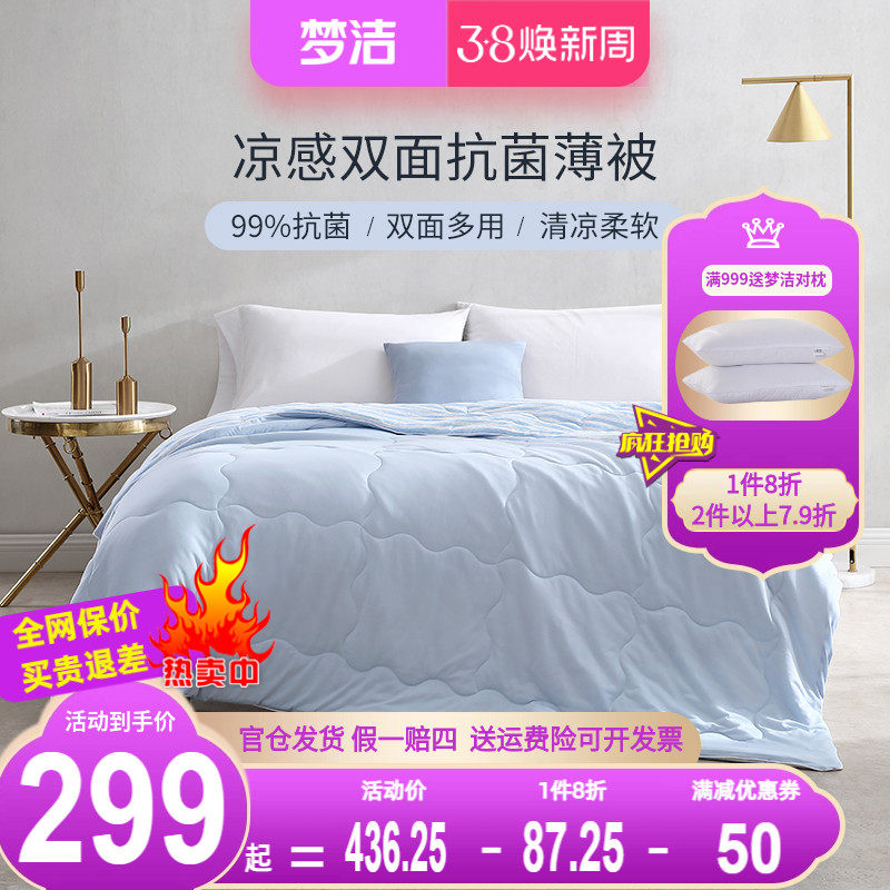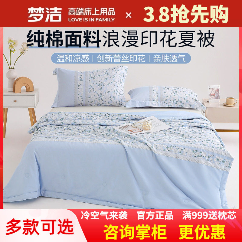梦洁全棉夏凉被纯棉空调被抗菌梦洁家纺夏季可水洗机洗薄被子夏被