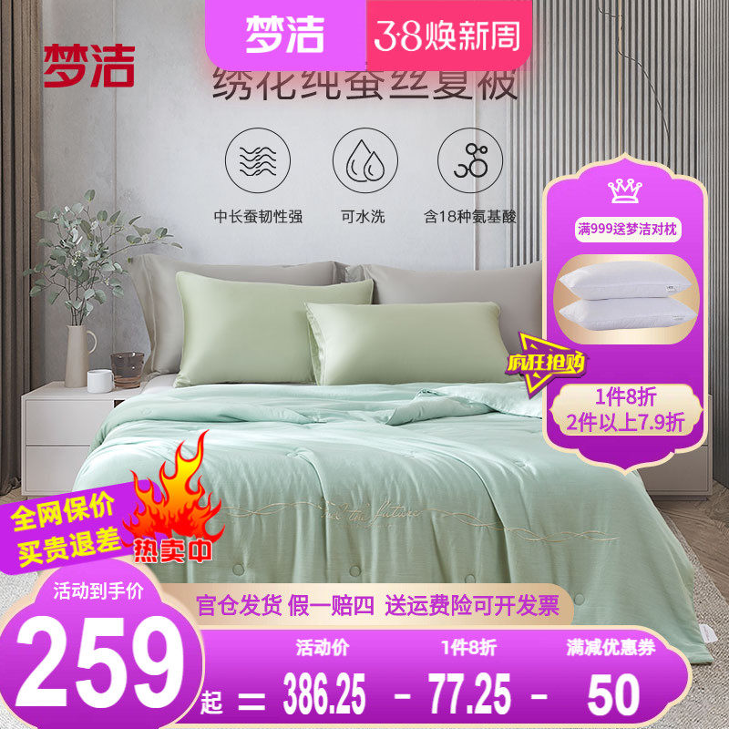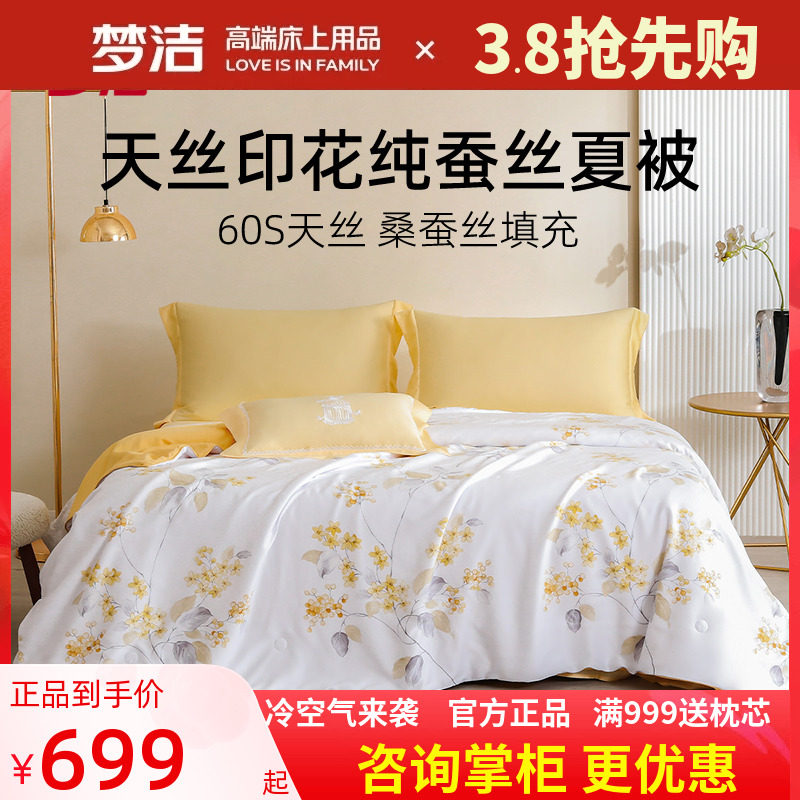 梦洁家纺蚕丝被夏被空调被凉感夏凉被夏季可水洗机洗单人双人被芯