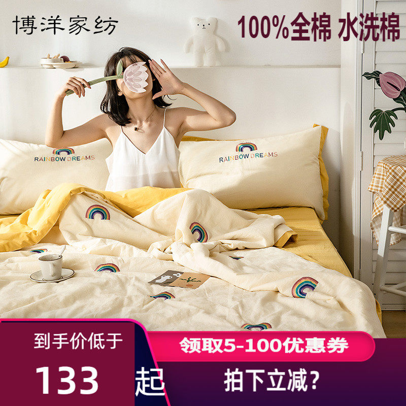 博洋夏凉被空调被纯棉全棉刺绣水洗棉可水洗双人学生春秋儿童夏被
