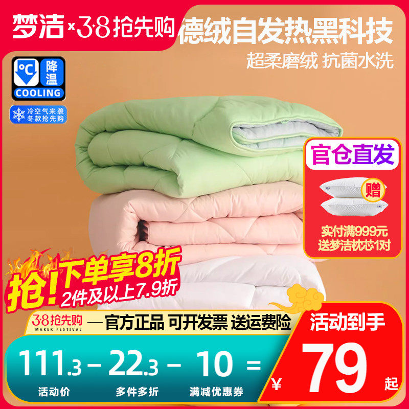 梦洁家纺四季被可水洗春秋被被子窝窝德绒发热冬被加厚被芯空调被