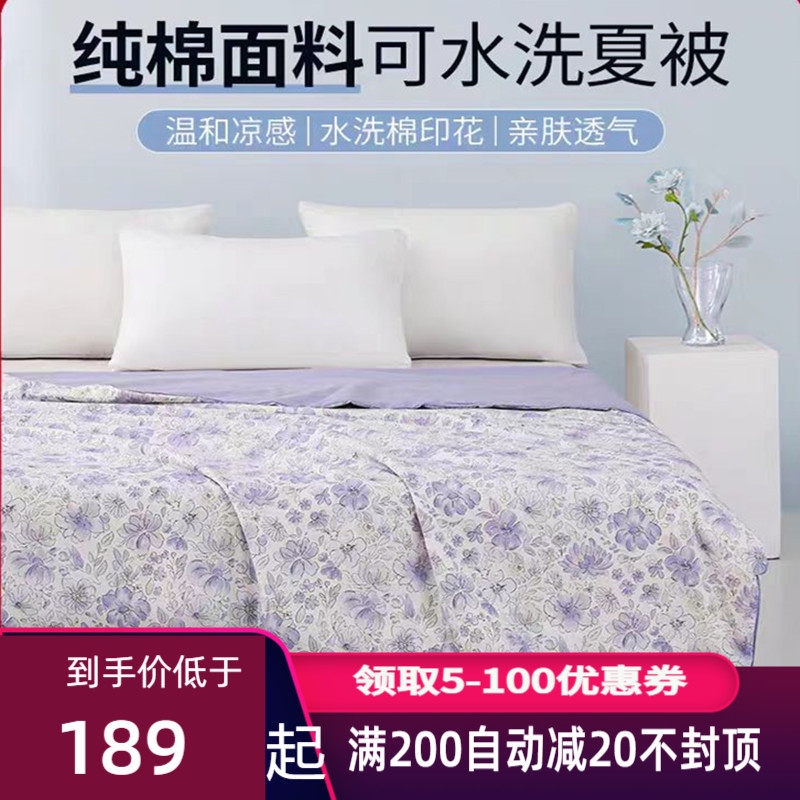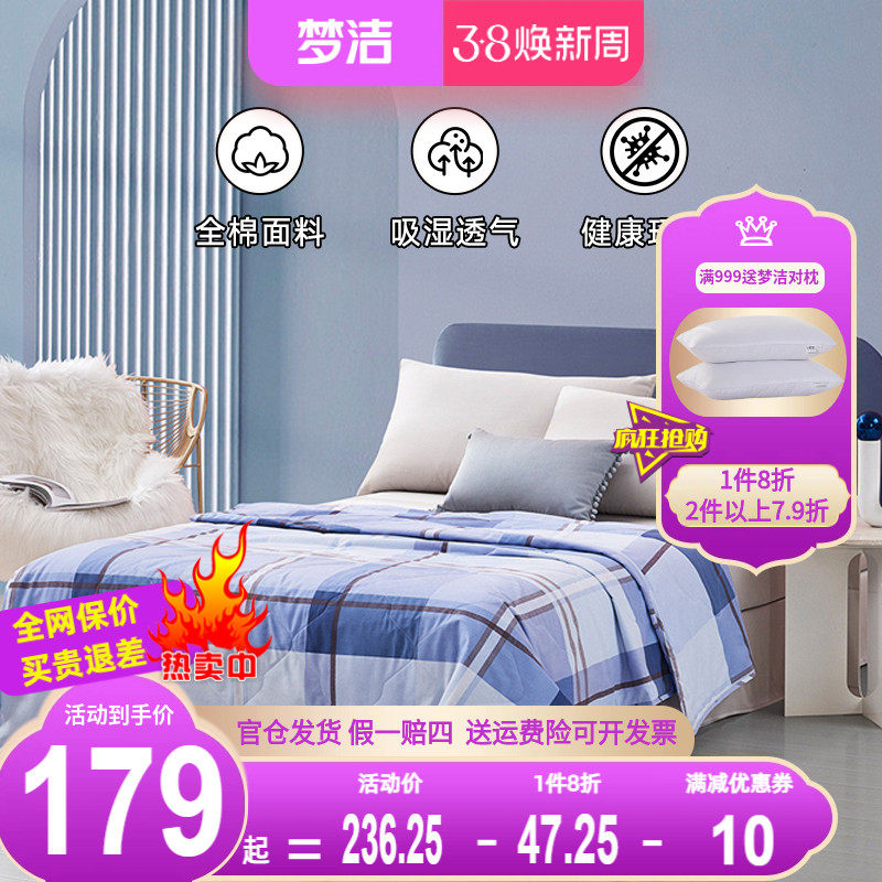 梦洁家纺纯棉抗菌空调被子梦洁全棉夏凉被芯单双人夏被可水洗维卡
