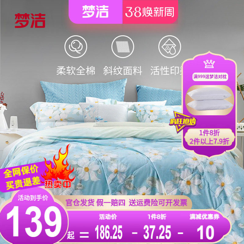梦洁家纺正品纯棉全棉印花夏季亲肤花卉梦洁清爽被夏凉被空调被