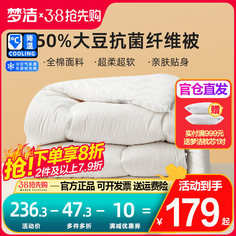 梦洁家纺抗菌大豆冬厚被春秋被子夏被空调被单人双人被芯248x2.48