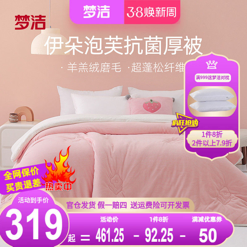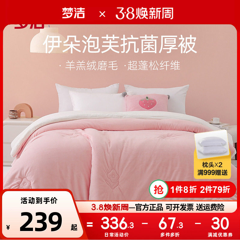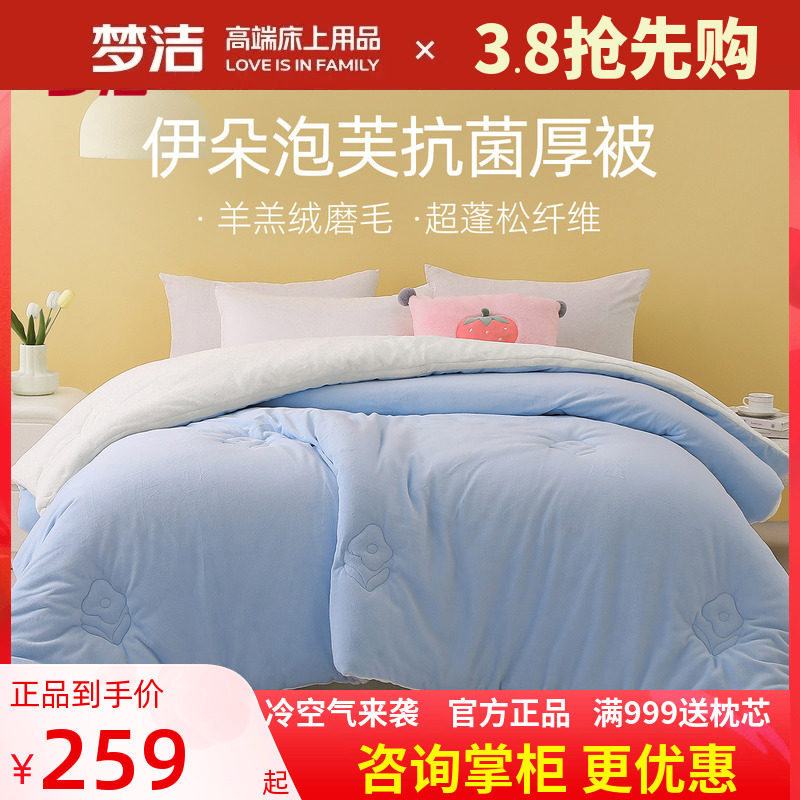 梦洁家纺新款羊羔绒被芯保暖秋冬加厚绒被褥伊朵泡芙发热纤维厚被