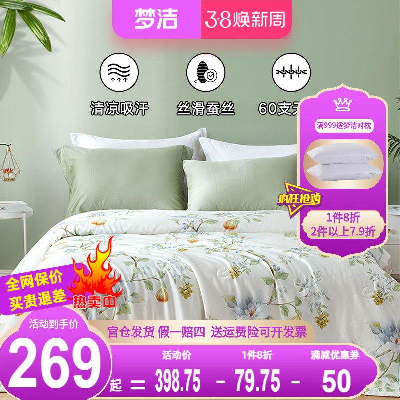 梦洁家纺正品60支天丝绣花夏薄被空调被子被芯夏凉被被褥花果乐园