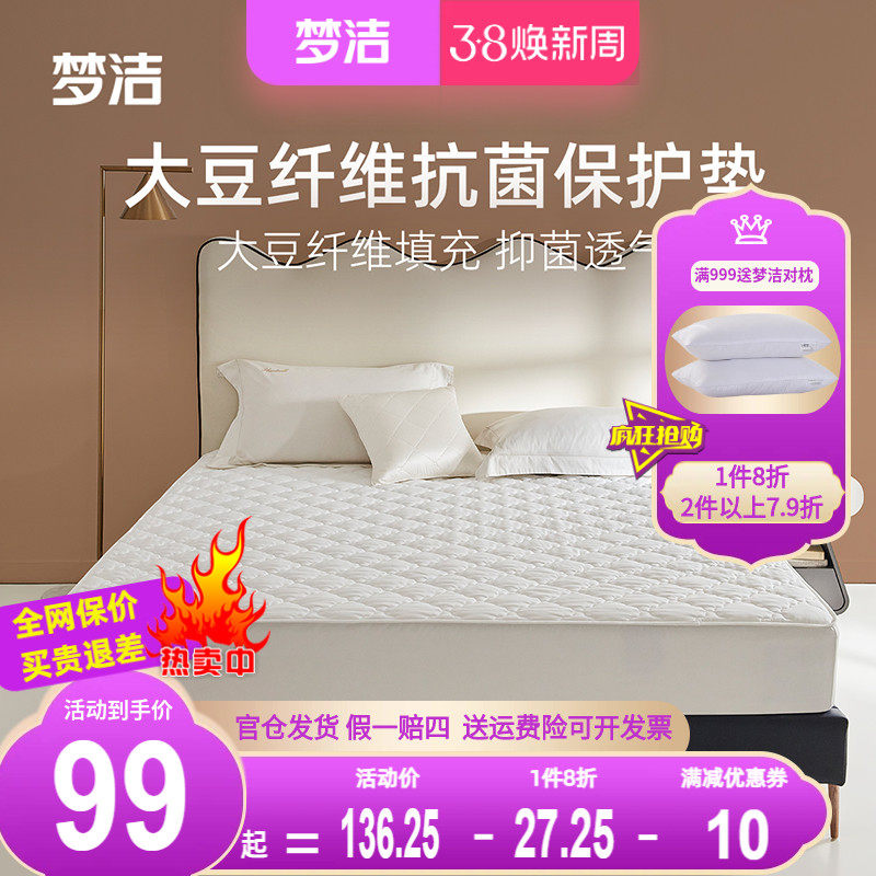 梦洁家纺大豆纤维床垫席梦思保护垫学生宿舍褥子抗菌被褥垫褥垫子