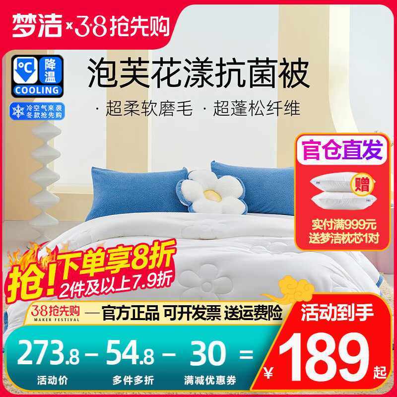 梦洁梦洁家纺被子2023年新款春秋被四季通用被芯抗菌泡芙花漾被褥