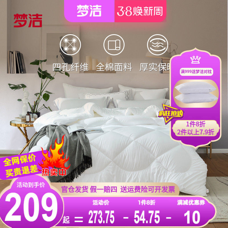 梦洁家纺全棉四季梦洁被芯太空被褥纯棉春秋被四孔冬被厚被专柜