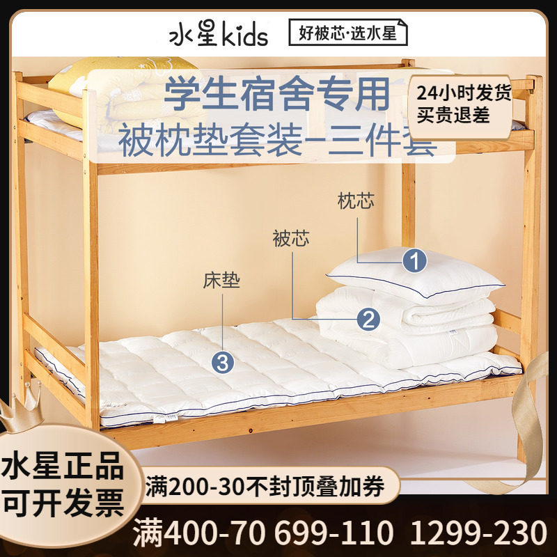 水星家纺被子被褥全套学生宿舍三件套床垫枕芯套件单人一整套装