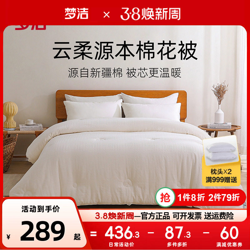 梦洁家纺纯棉春秋被芯四季被子双人太空棉被全棉踏花被褥248x2.48