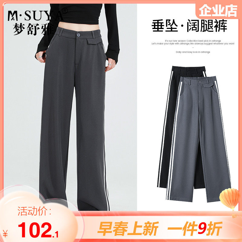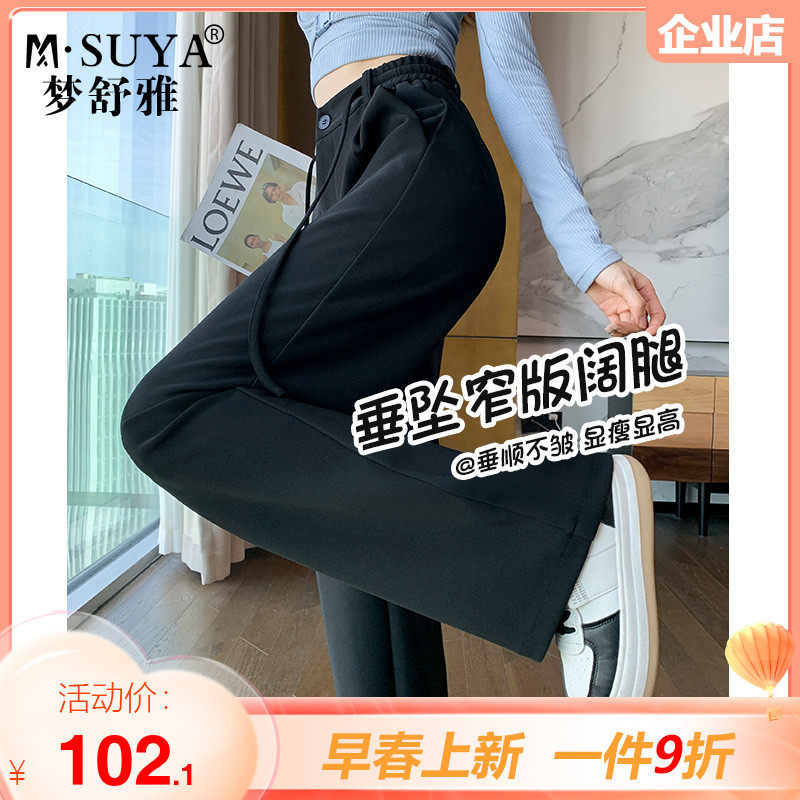 梦舒雅阔腿裤女2023年春秋新款高腰显瘦休闲时尚窄版拖地直筒裤子
