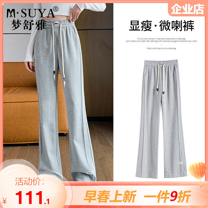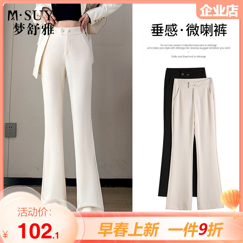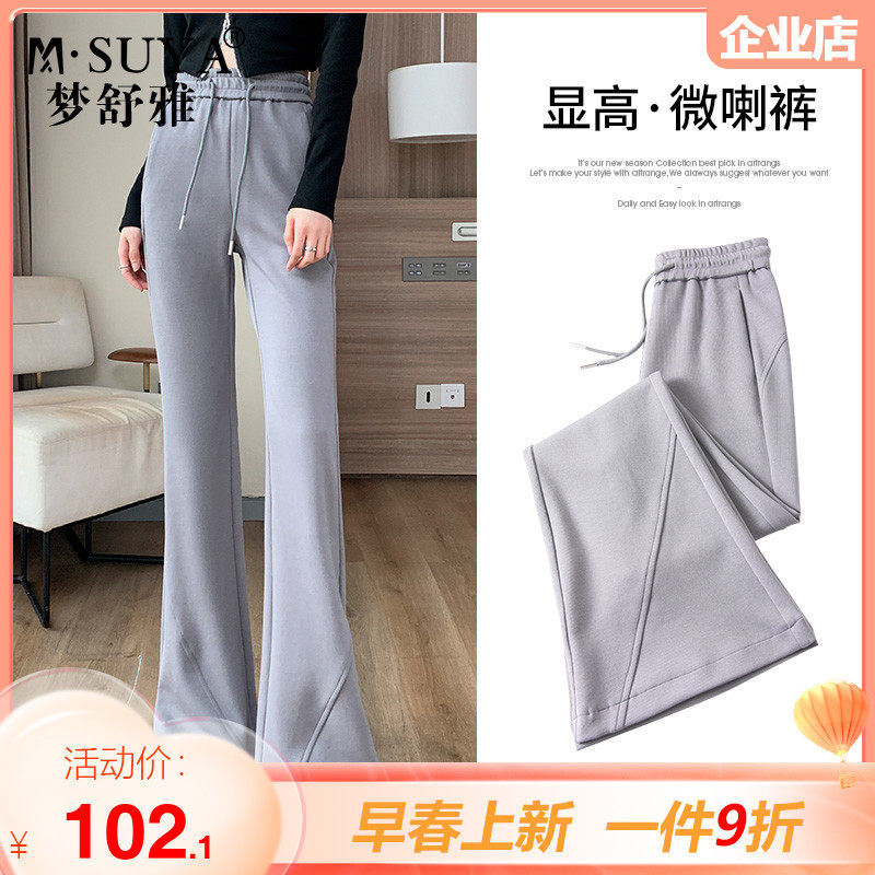 梦舒雅女裤官方旗舰店喇叭裤女春秋2023新款高腰休闲韩版微喇西裤
