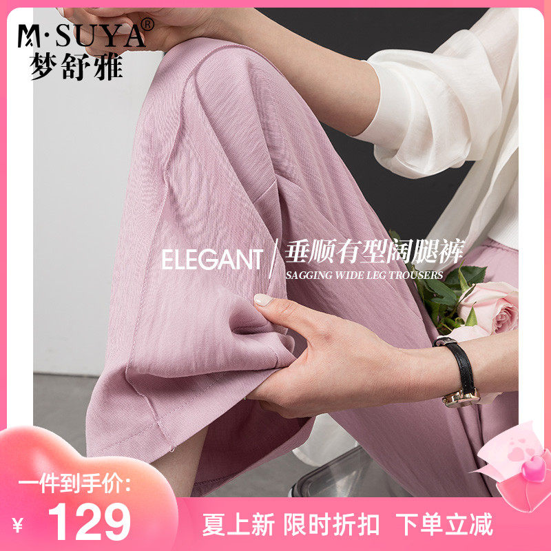 梦舒雅阔腿裤女2023新款夏季高腰垂感宽松休闲裤薄款冰丝麻感裤子