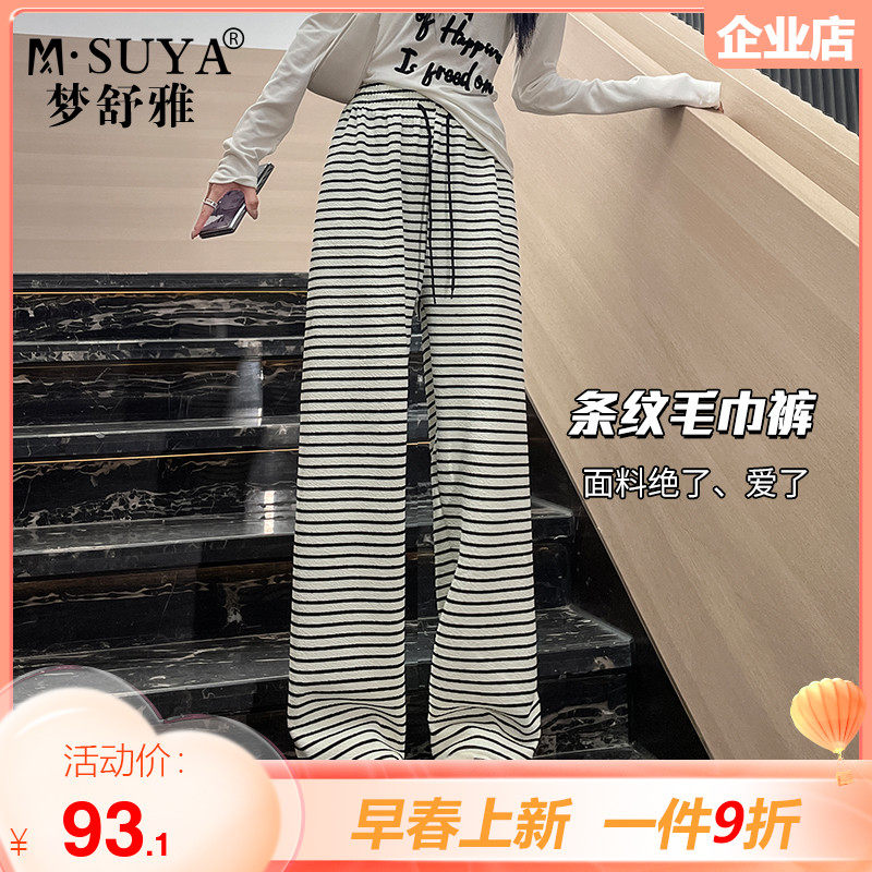 梦舒雅条纹阔腿裤女春秋新款高腰垂感宽松显瘦直筒休闲拖地长裤子