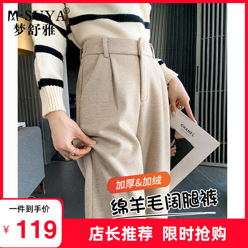 梦舒雅高腰窄版阔腿裤女2023年秋冬新款绵羊毛显瘦休闲加厚直筒裤