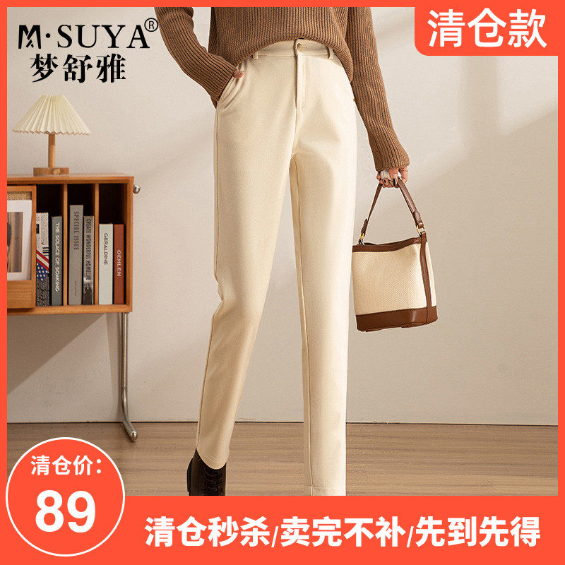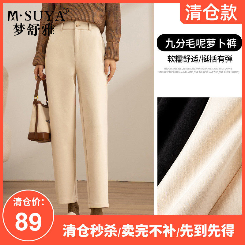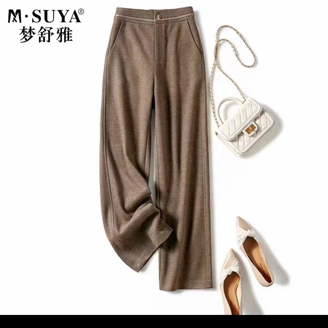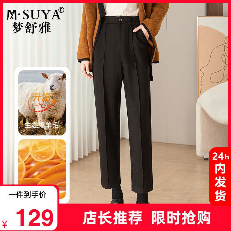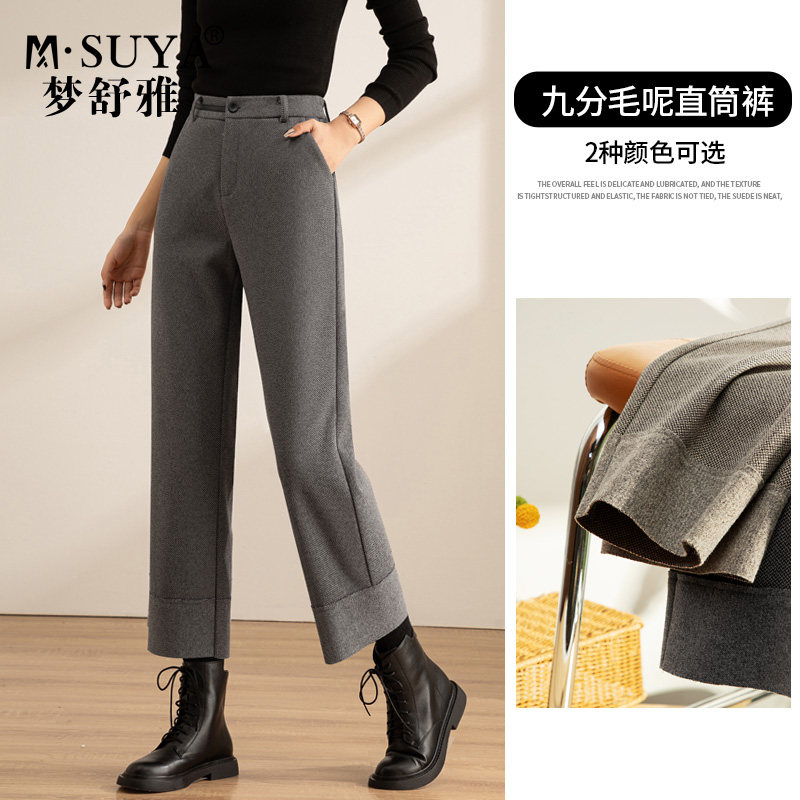 M·SUYA/梦舒雅LY7058毛呢加绒加厚九分直筒裤烟管裤高腰百搭休闲