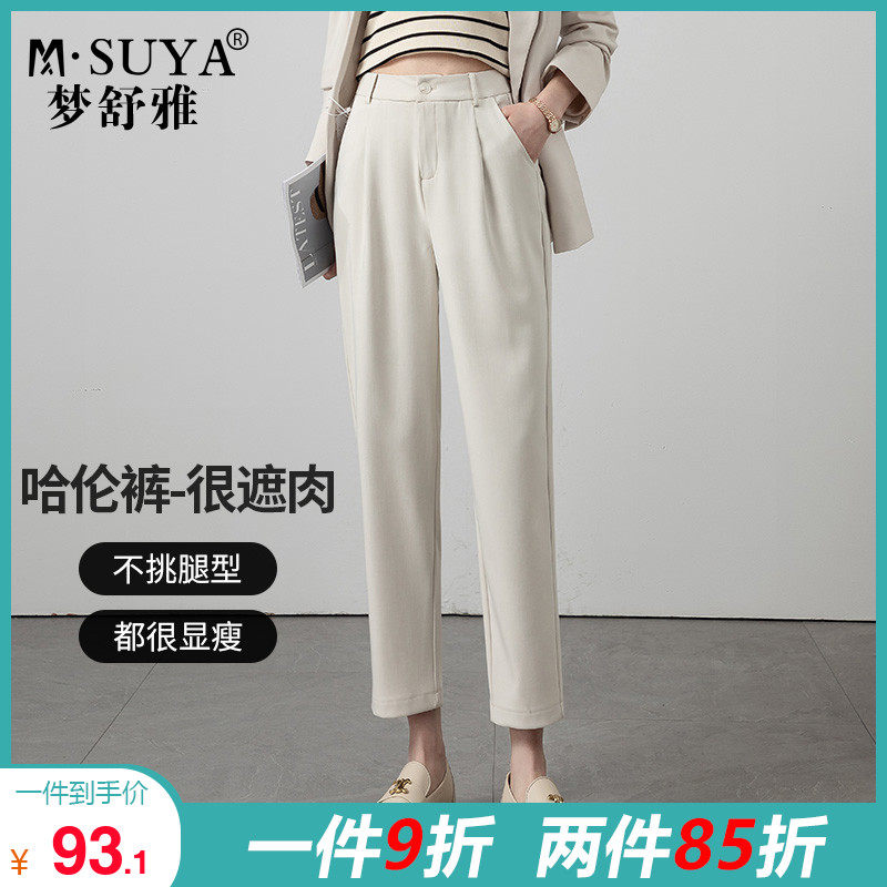 梦舒雅哈伦裤女2024年春秋新款高腰显瘦九分小个子休闲烟管哈伦裤