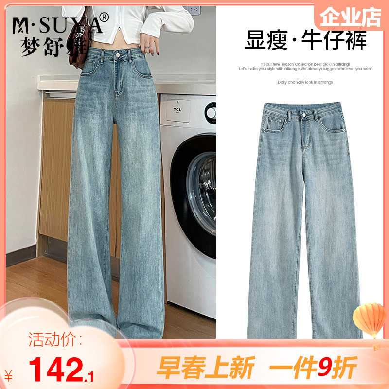 梦舒雅高腰阔腿牛仔裤女春秋新款宽松显瘦休闲时尚垂感小个子直筒
