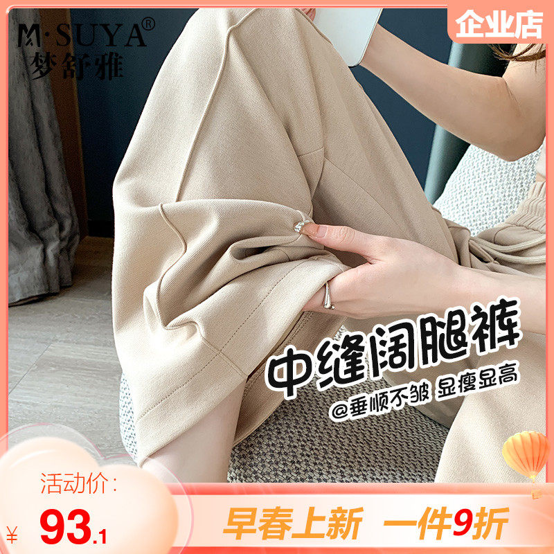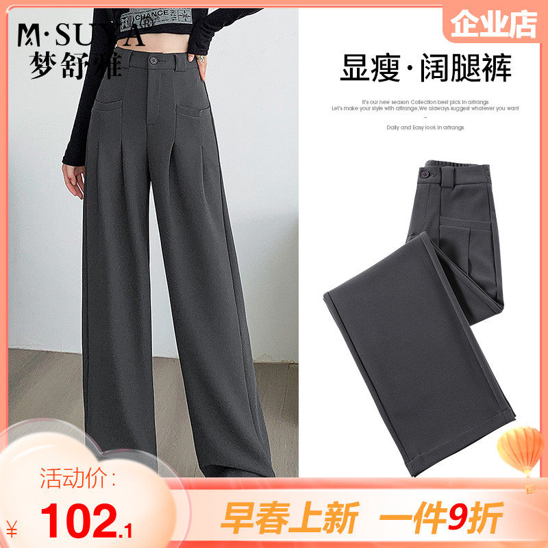 梦舒雅西装阔腿裤女春秋新款高腰垂感宽松显瘦直筒休闲拖地长裤子