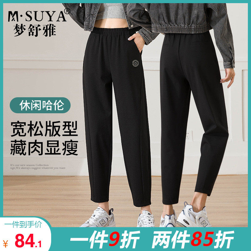 梦舒雅哈伦裤女春秋新款九分高腰显瘦宽松直筒休闲哈伦萝卜老爹裤